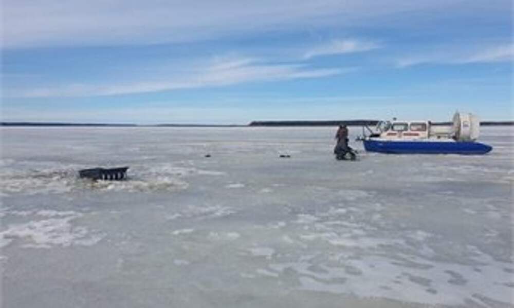 Рыбаки утопили снегоход на Рыбинском водохранилище